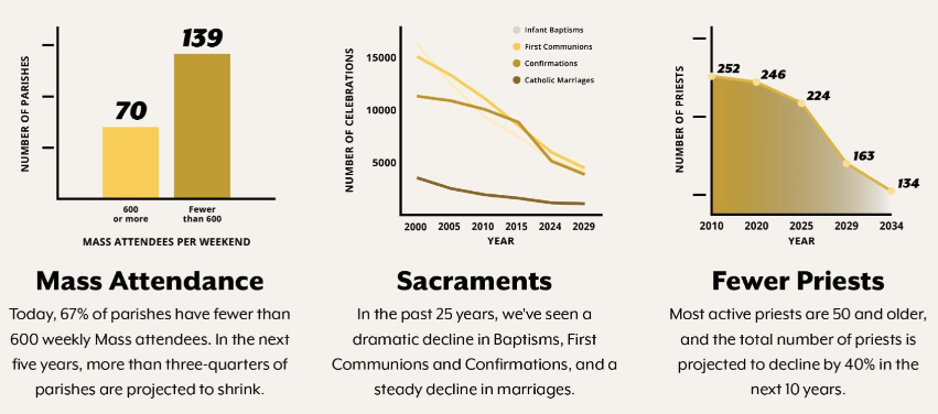 In January 2026, over 170 priests from across the archdiocese gathered for several days of prayer, discernment, and strategic discussion to develop the first round of restructuring models. Each model includes potential groupings of parishes within a particular geographic area. These groupings—called pastorates—may consist of one or more canonical parishes, or they may include parishes that merge into one parish while maintaining one or more church buildings. This spring, every parish will host two listening sessions where the first draft of pastorate models will be presented. Our parish listening sessions are scheduled for June 2 and June 4 at 7:00 - 9:00 PM in the Church. You may RSVP for one of these sessions at restructuring.aod.org (HERE). These sessions will give you the opportunity to review the models developed by our priests and to share your feedback on the proposed pastorates. After feedback is gathered from every parish, many of the models may be revised. Ultimately, Archbishop Weisenburger will prayerfully discern the refined models before determining the future structure of the Archdiocese, which will take effect beginning in July 2027. Please take time to review our Parish Workbook fully before attending. Every parish in the Archdiocese of Detroit will undergo some degree of change as a result of this process. As you consider these changes,you're encouraged to view them as opportunities to re-envision how we minister to the people we serve. Given the upcoming structural shifts and the decreasing number of priests assigned to each pastorate, many parishes will experience adjustments to their Mass schedules. In some cases, this will mean a reduction in the number of Masses offered at a particular location. These changes will help ensure that priests have adequate time to travel between sites and remain available and present to their parish communities. Changes in Mass times, while challenging, will also present opportunities to welcome new faces, strengthen ministries, and collaborate more intentionally within our pastorate. Parish staff members may see shifts in responsibilities as new teams are formed, but they will also gain opportunities to work together in creative and innovative ways across parish boundaries. The vision amidst this is to havevibrant parishes, flourishing priests, and to be mission ready. The thought of change can be difficult, especially when it touches our spiritual homes, our priests, and the community members we hold dear. Yet be assured that through every change and challenge, God is with us. He is inviting us to lay down our own desires and fears so that we can receive new and hopeful opportunities to renew the Church here in southeastern Michigan. Let us come to these sessions not ready to fight, argue, or insist that we are exempt from change. Instead, let us come with docility to the Holy Spirit—with open hearts and open hands—ready to receive what the Lord desires to give, ready to serve in whatever ways we are called, and always entrusting this important work to the Holy Spirit. |